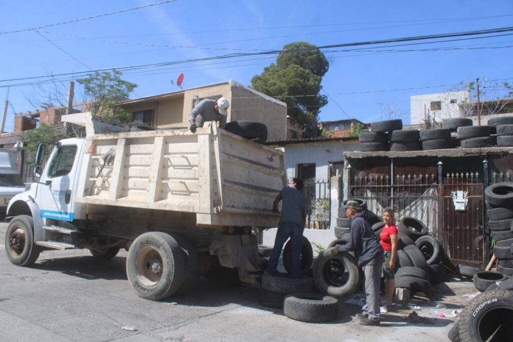 Con el objetivo de brindar la atención debida a los reportes hechos por los ciudadanos, personal de la citada dependencia retiró la acumulación del domicilio, del cual se retiró una cantidad considerable de neumáticos.