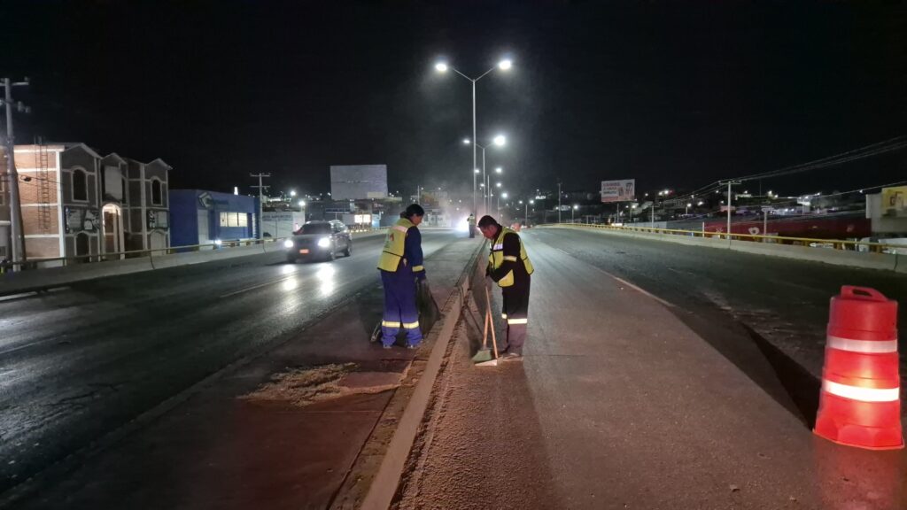 Como parte de estas labores, diariamente se despliegan cuadrillas nocturnas que realizan trabajos de limpieza en vialidades de alto flujo vehicular, mismas que no pueden ser atendidas durante el día debido a su importante tráfico. Estas acciones permiten intervenir de manera eficiente sin afectar la libre circulación de los vehículos, priorizando tanto la seguridad como la movilidad de la ciudadanía.
