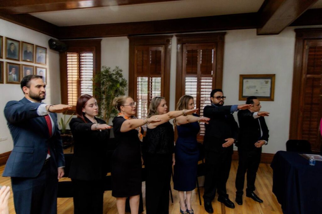 H. Ciudad de Chihuahua, Chih., a 8 de abril de 2026.- El alcalde Marco Bonilla tomó protesta a la nueva mesa directiva de la Asociación de Comerciantes del Centro de la Ciudad de Chihuahua A.C (COCENTRO), donde se renuevan las secretarías, vocales y la presidencia, a cargo de Liliana Aranzola, organismo que trabaja a favor de las políticas públicas que dignifiquen a todos los comerciantes del primer cuadro de la ciudad.