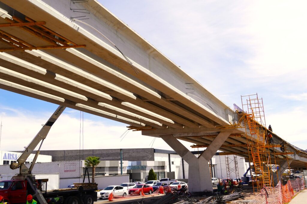 Esta obra, que beneficiará a más de 350 mil ciudadanos, cuenta ya con la instalación de 48 trabes de concreto reforzado, lo que representa un avance significativo en la conformación de la estructura principal.