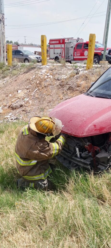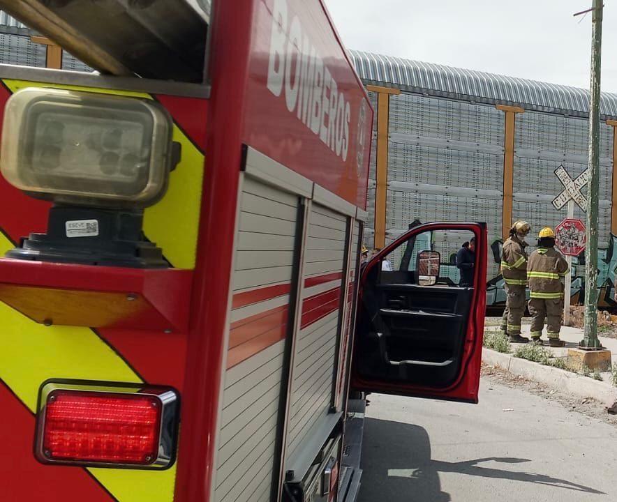 Ciudad Juárez, Chih., 14 de abril de 2026.— Elementos de la Dirección General de Protección Civil atendieron la tarde de este martes un llamado de emergencia por un choque con el tren registrado sobre el Eje Vial Juan Gabriel, en el cruce con Parque Industrial, dentro de la colonia Parque Industrial Azteca.