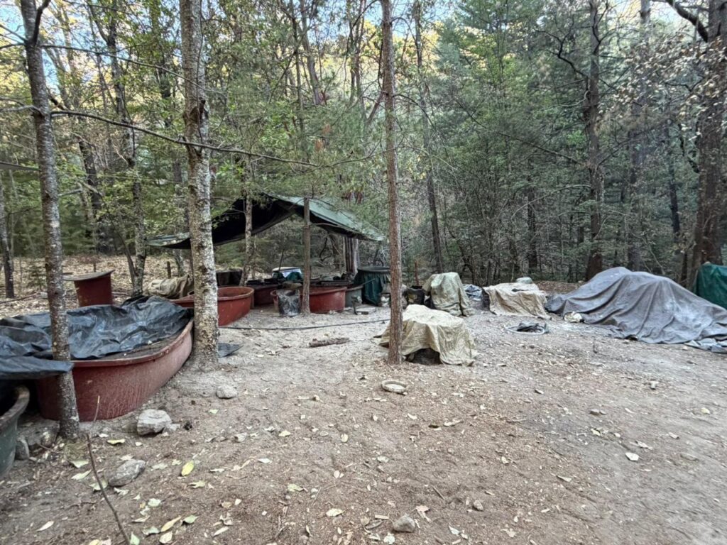 También se encontró un campamento de aproximadamente 20×15 metros, con víveres para consumo humano.