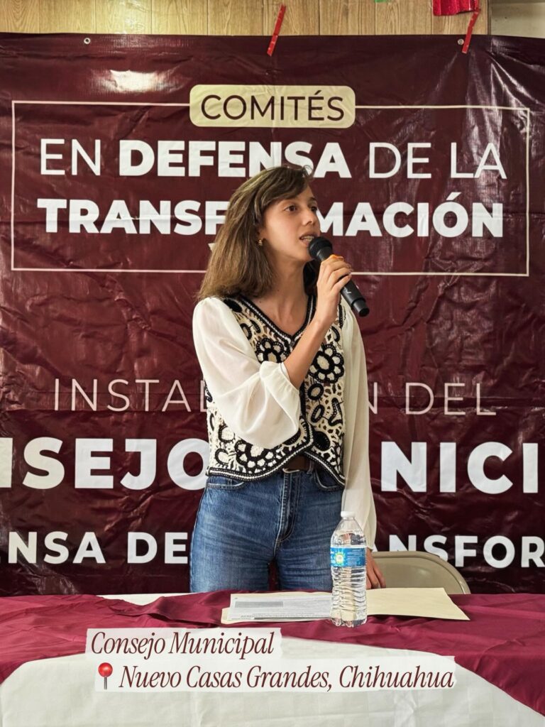 En la misma jornada, estuvo la secretaria nacional de Comunicación, Camila Martínez, liderando la instalación de Consejos Municipales en Nuevo Casas Grandes y Delicias el sábado y domingo. También del mismo equipo, aunque sumamente colaborativa e institucional.